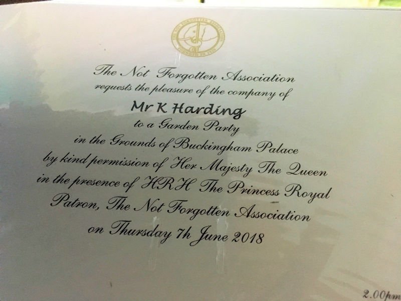 The invite happened because we are veterans and go once a month to the veterans association. We were asked if we wanted to go to the garden party. We said we would love to go. We had to complete forms with all army details and if we were chosen we would get invites in the post. We passed and the invites came for the 7th June. Its run by ‘The Not Forgotten Association ‘
